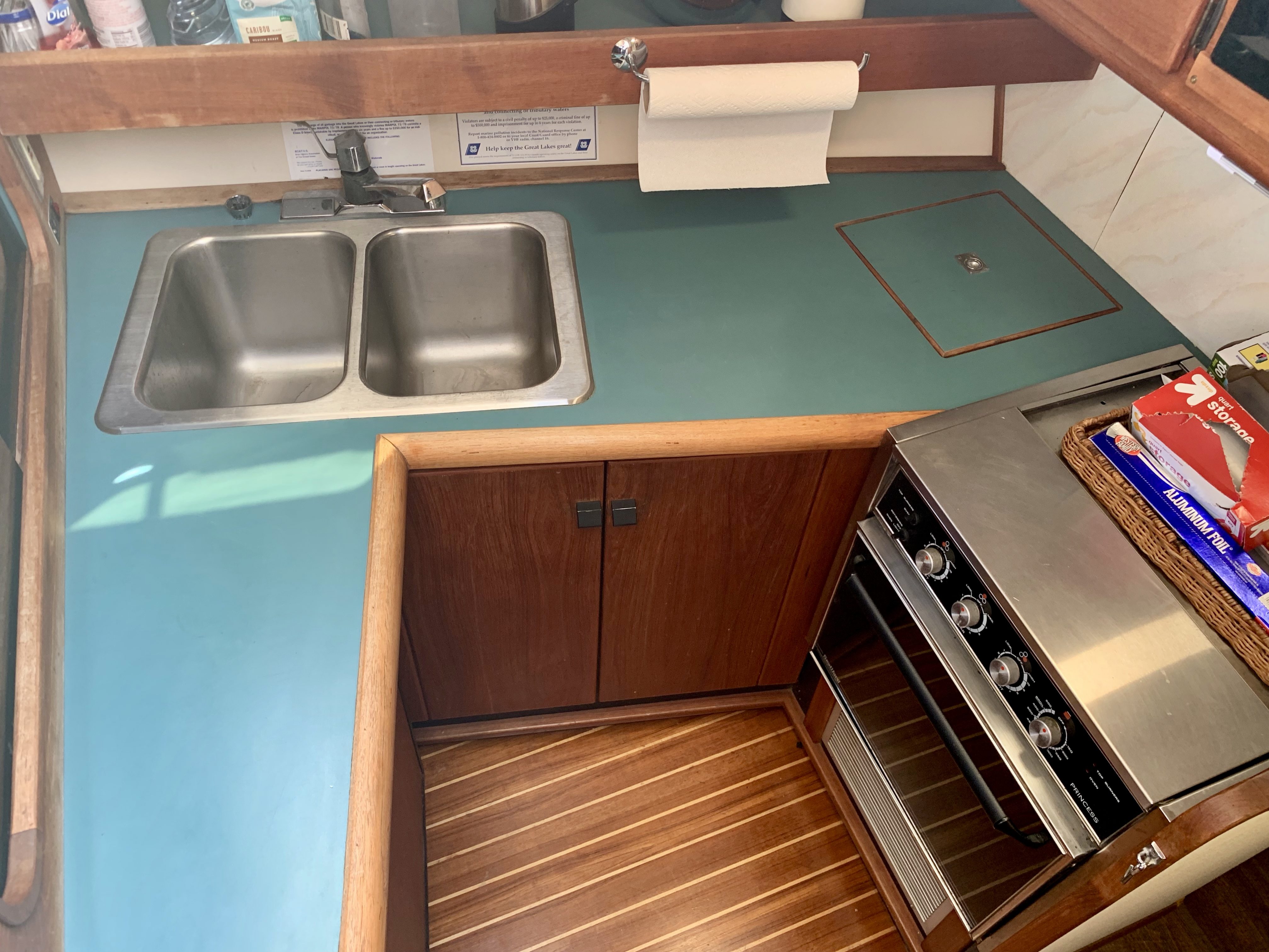 - Galley: Refrigerator, Three Burner Electric Stove/Oven and Microwave Oven