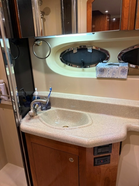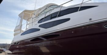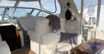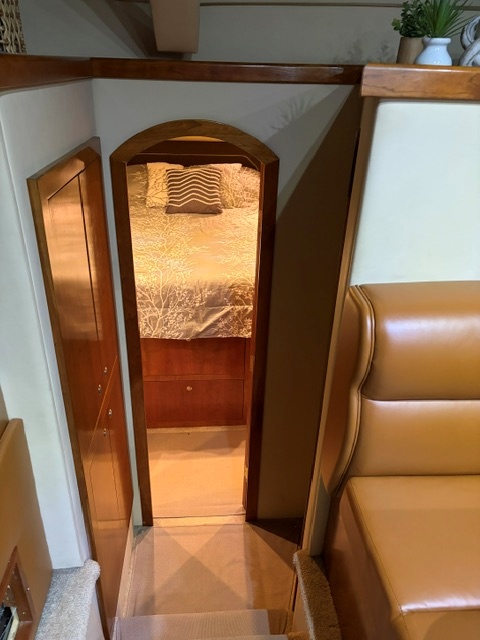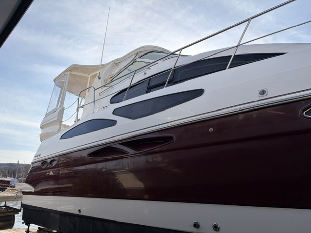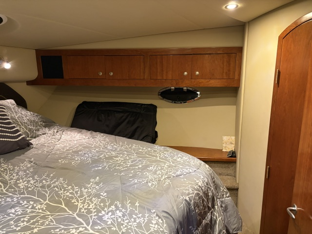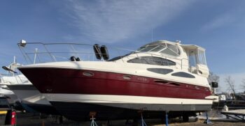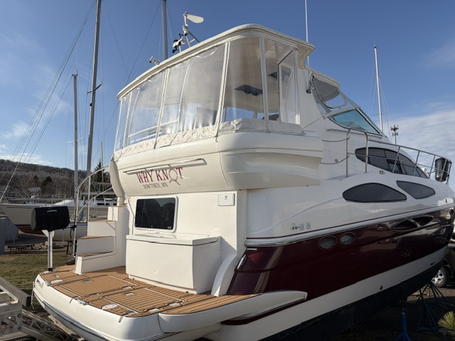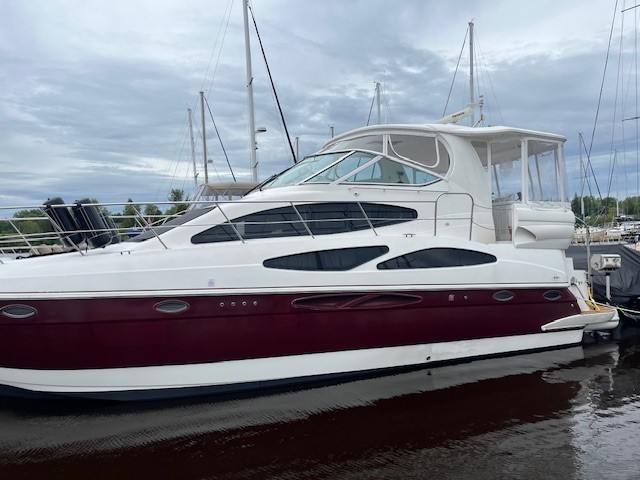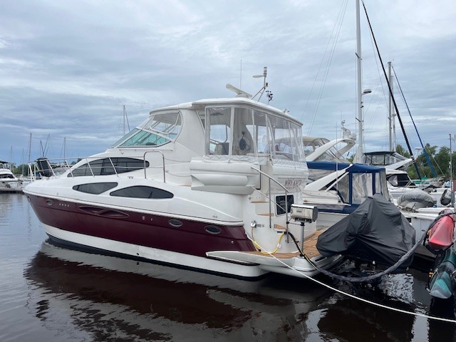 This 2005 Cruisers Yachts 405 Express Motoryacht is designed for comfortable cruising and extended stays on the water. It offers the best of both worlds—an open, social express-style upper deck and a spacious aft-cabin layout below.