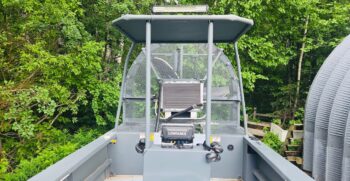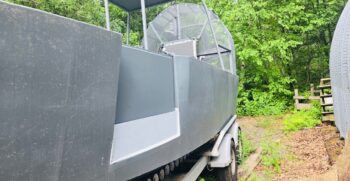 This is a custom made airboat that offers a 1/4″ thick aluminum hull with 250-gauge marine grade plate. A hard top with navigation and interior lights, Century drive and a whisper tip prop. This vessel accommodates 10 people.