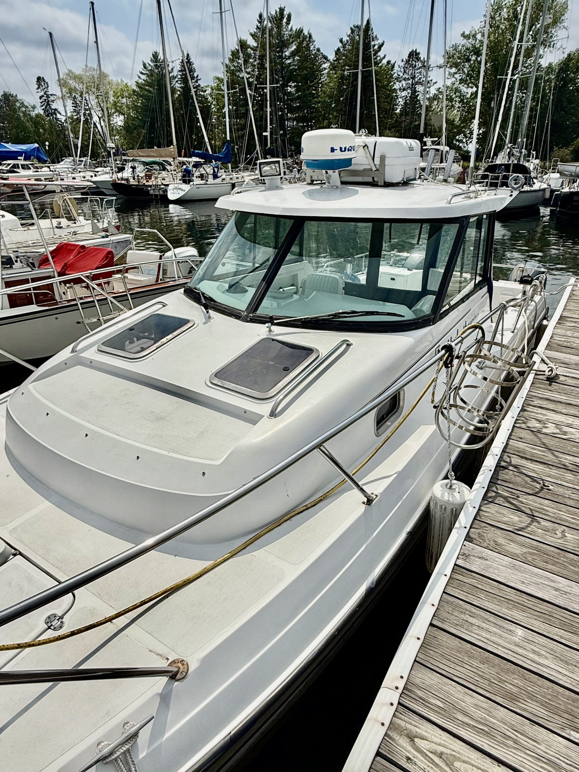 The Glacier Bay is in very good condition and has two 150 HP Yamaha outboard motors which were new in 2019. Since that time the motors have operated less than 50 hours. The boat includes two downriggers, a deck box and many other rehabbed features. The following is a brief description of the features: