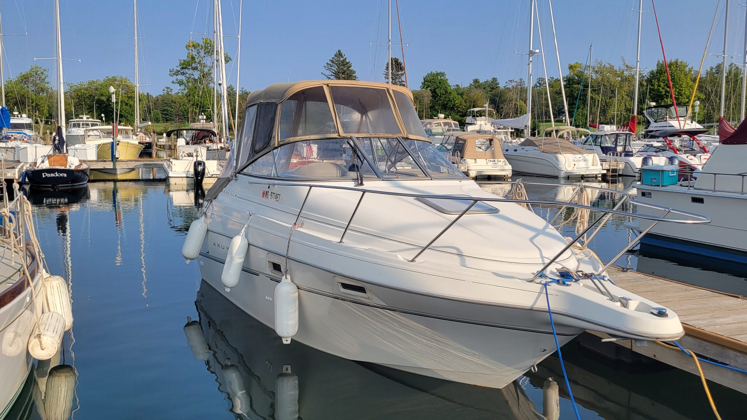 One of the most popular small family boats, pocket size with mid size room and performance. These boats are well suited for the Great Lakes and perfect for fishing, cruising, water sports and family fun. The cockpit is ideal for guests and a swim platform makes for safe water fun. Below deck a nicely appointed cabin has sleeping for 4, an enclosed head and small galley area. The Maxum 2400 has been a staple for boating and continues to set the bar for its class.
