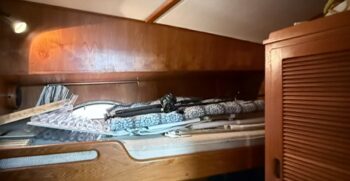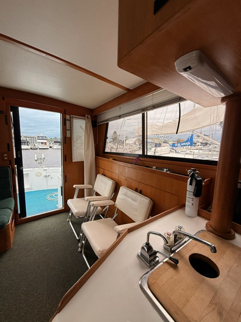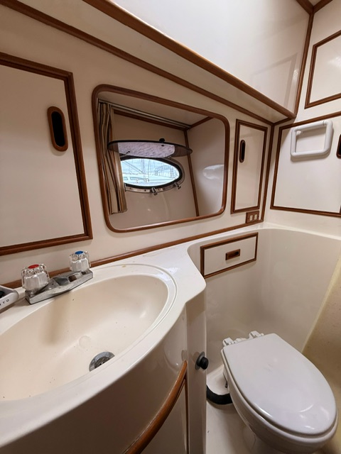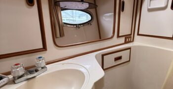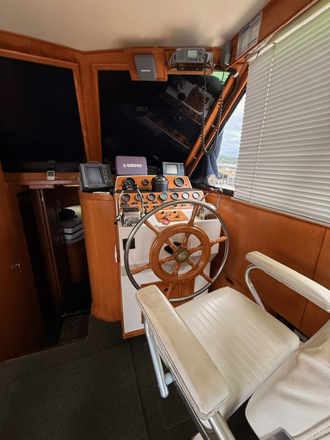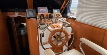 The President 37 Sedan Sport Fish was built for longevity and the ability to withstand extreme ocean conditions. The hull construction is reinforced solid fiberglass, and a shallow keel provides an excellent command and optimal directional stability and huge stringers (no flimsy foam) twin-stateroom floor-plan, with a single head and spacious salon. This higher end model was delivered with full teak interior, cabinetry and dual helm.