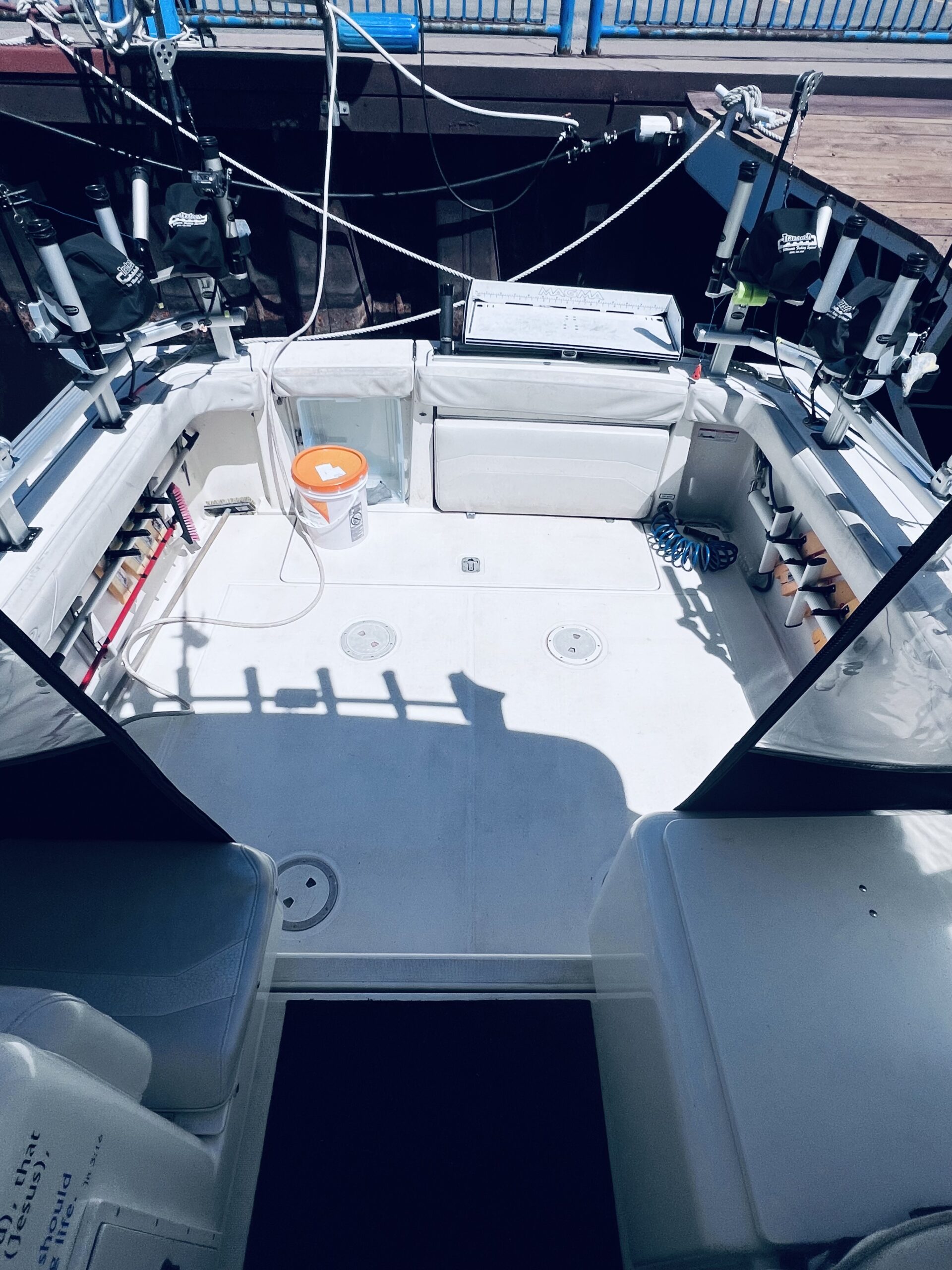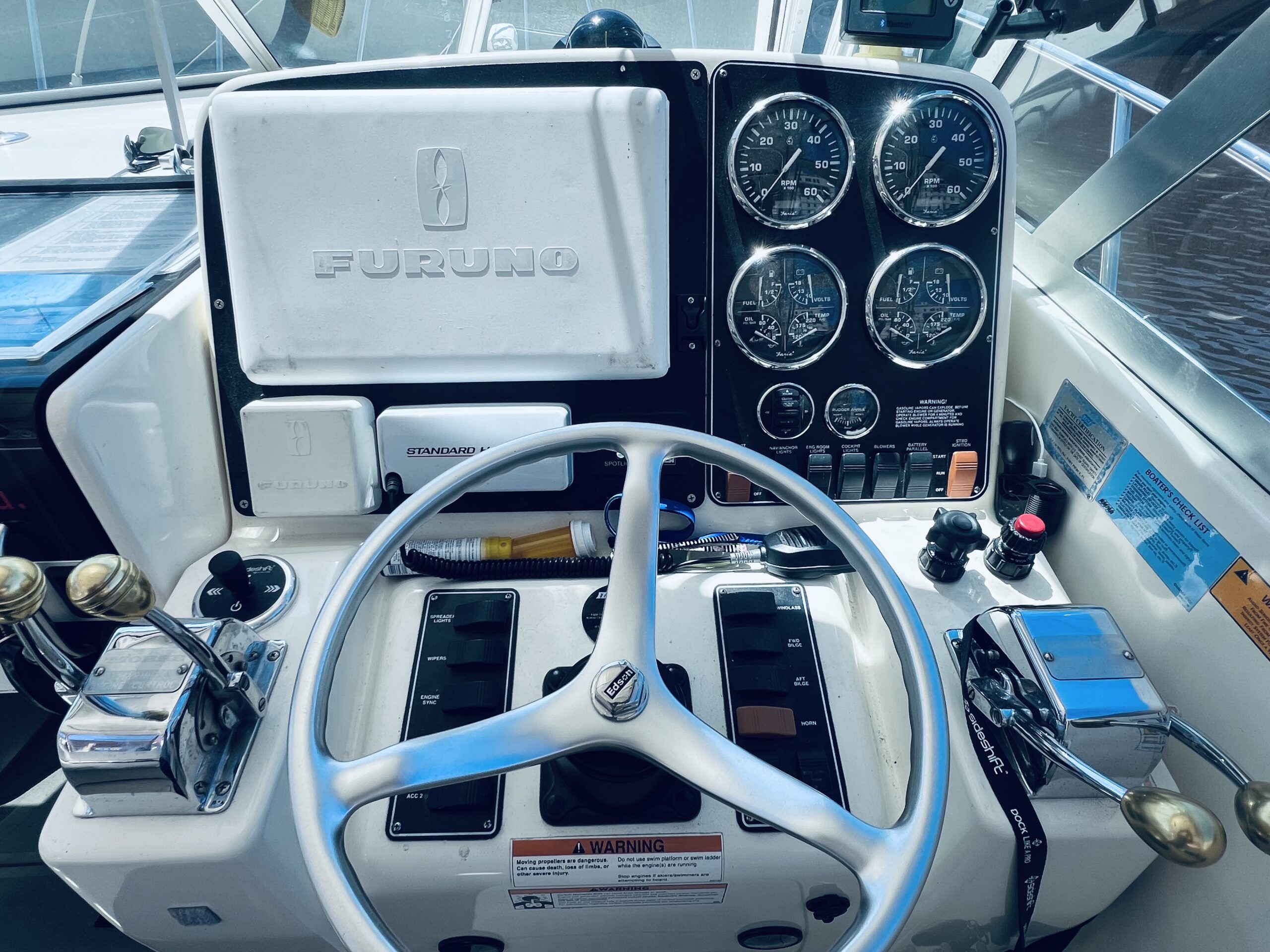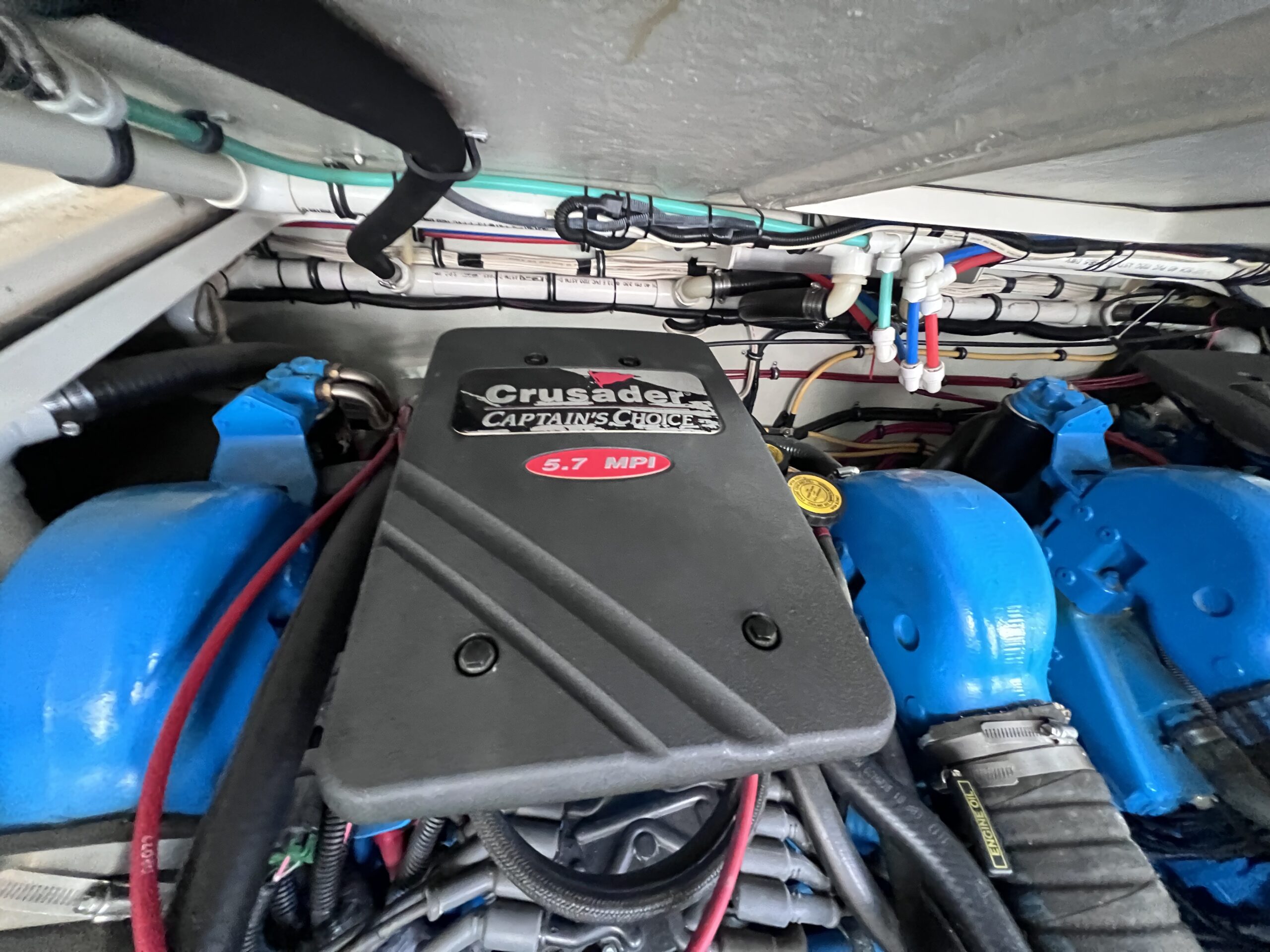 - Engines – Twin Crusader 5.7 Liter Captains Choice with 320 hp Gas Inboards with 1850 Hours