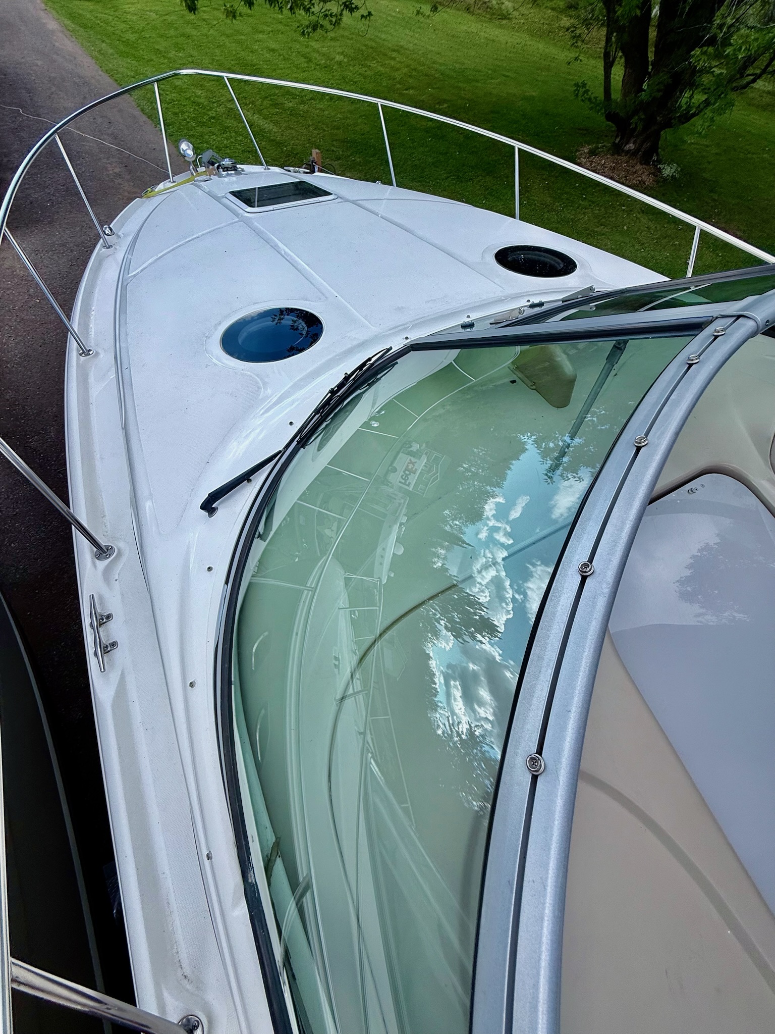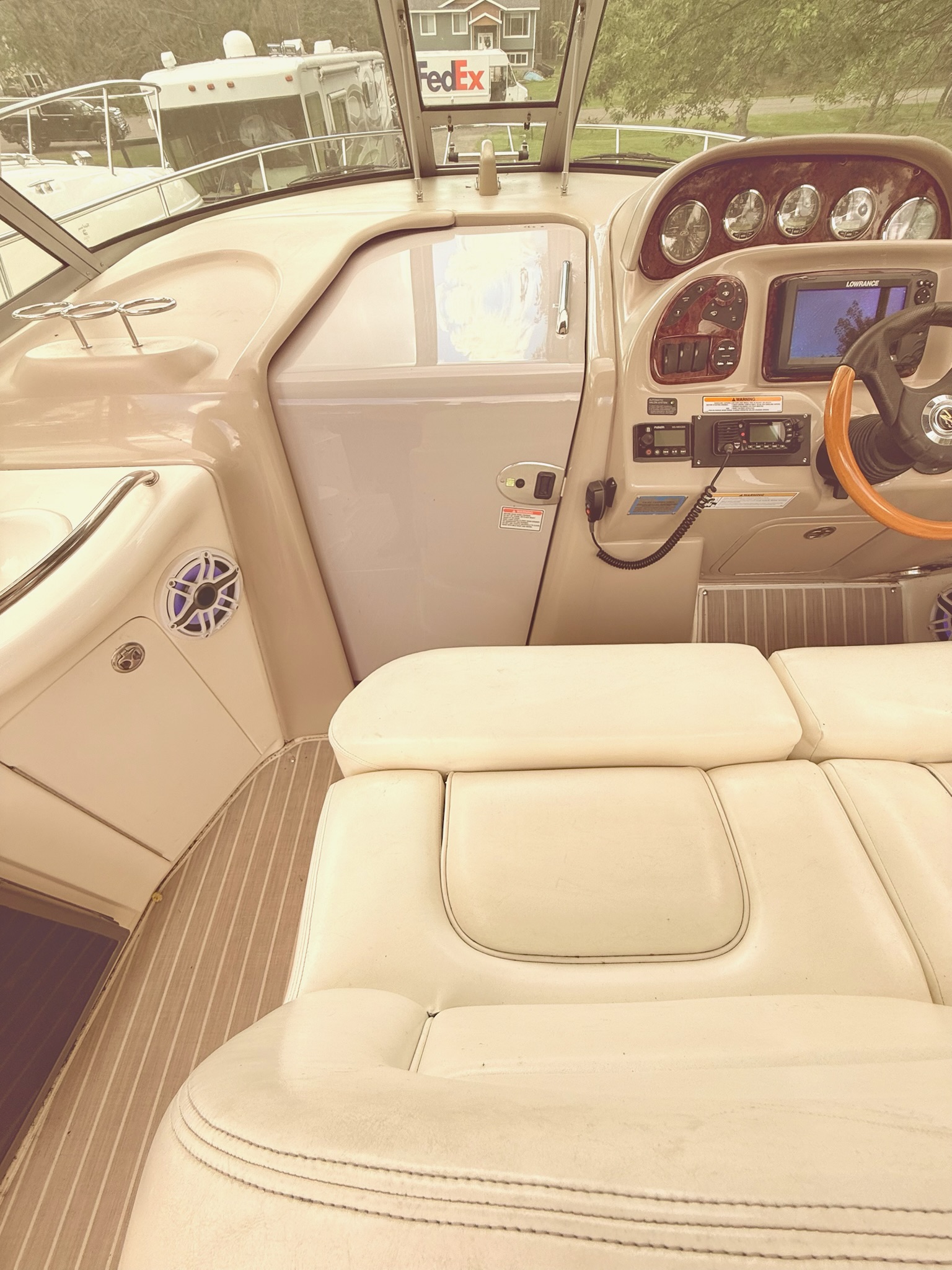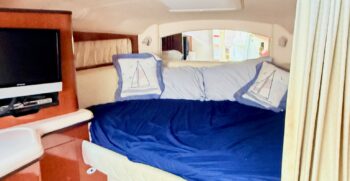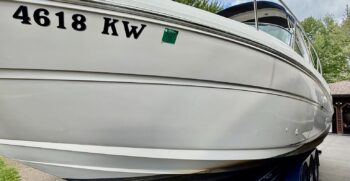 · Engines – Twin MerCruiser 350 MAG MPI Bravo III 300hp Gas 780 Inboard · Trailer – 2005 Loadmaster 320R616CBR · Kohler Generator · Lofrans’ Windlass · Fire Suppression · GPS · Depth Finder · Dometic Cruisair Marine Air Conditioning · Bilge Pump · Dometic VacuFlush Head and Holding Tank System · Shower · USCG Safety Equipment · New Faucets in all Sinks (2025) · Replaced a Lower Unit (2024) · Stored Indoors Off Season · Winterized/Maintained by a Sea Ray Certified Mechanic Annually · Two of the Three Axels on the Trailer were Replaced and New Tires (2023) · Fusion Premium Sound System with Subwoofer and Bluetooth Connectivity · Marine Radio (2024) · Two Refrigerators, Stove Top, Microwave, TV, DVD Player · Full Camper Canvas in Navy · Snap in Newer Flooring |