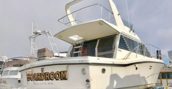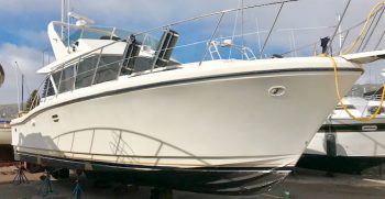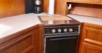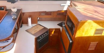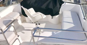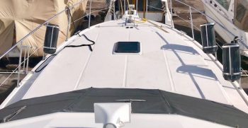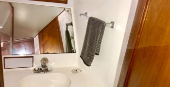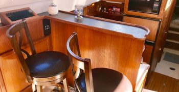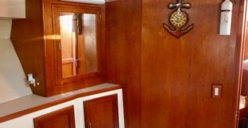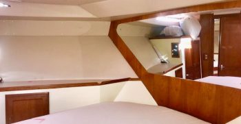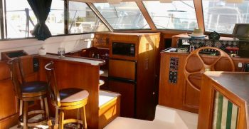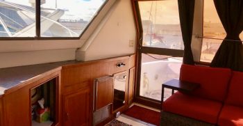 This is a quality built boat with nice lines and teak interior. A wide beams give this Symbol the feeling of a much bigger boat. There is plenty of indoor and outdoor square footage, making her a great potential live-aboard. A large bow and back deck accommodate outdoor living and fishing desires. A double cabin door lets in lots of light to the interior.