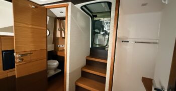 Powered by twin Volvo Penta IPS 600 diesel engines (435 HP each), the Q44 reaches a cruising speed of approximately 31.4 knots and a top speed near 36.4 knots. Joystick controls make docking and maneuvering effortless, while premium onboard systems ensure comfort and convenience throughout.