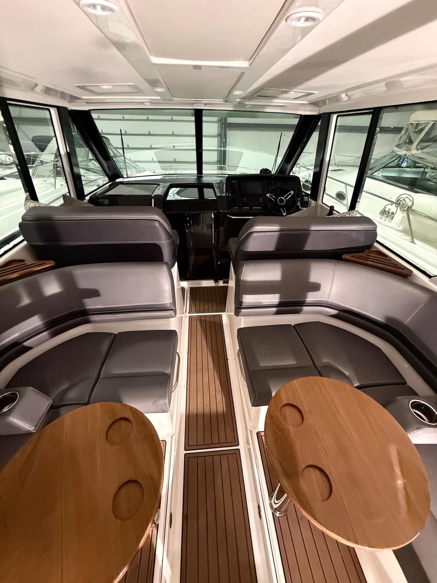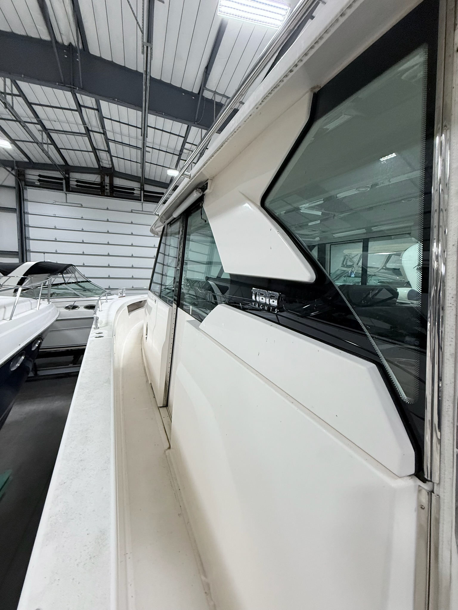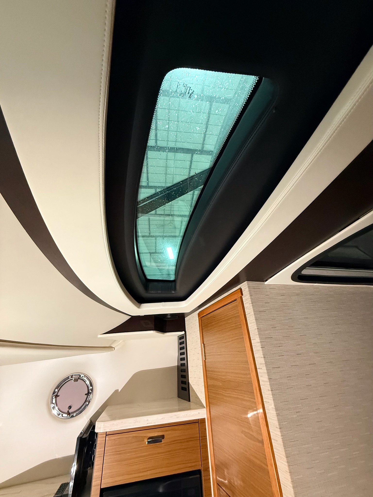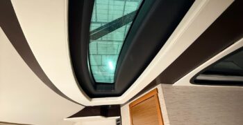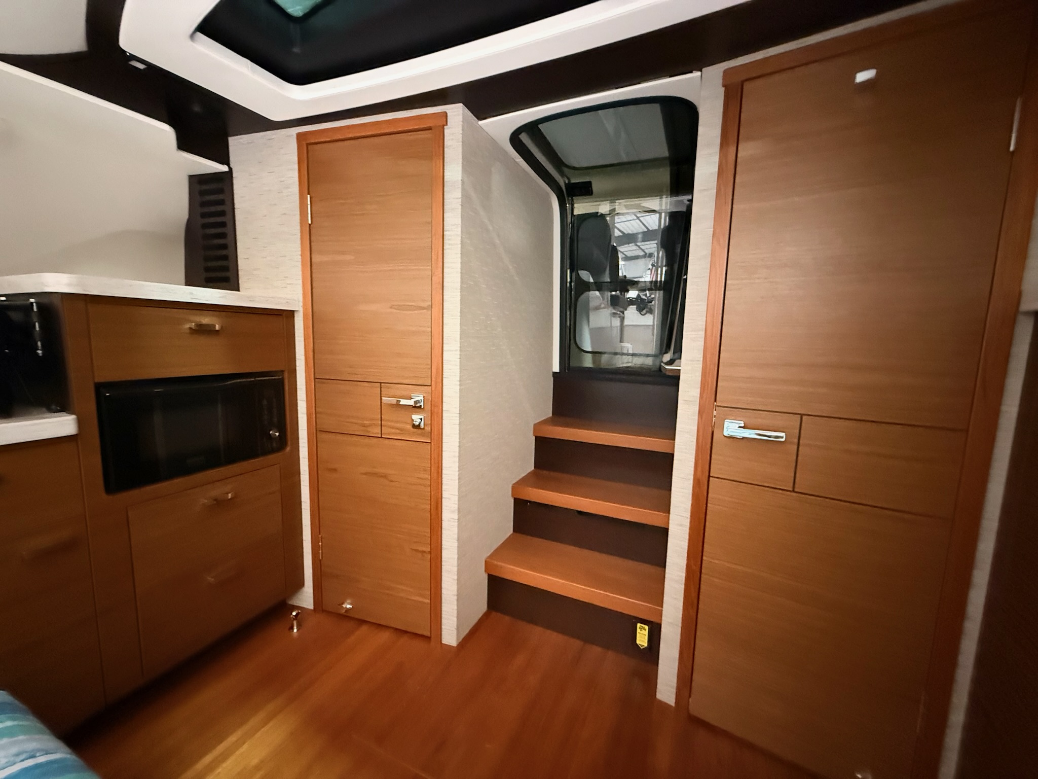 - White gelcoat hardtop with powered sliding side doors (port & starboard)