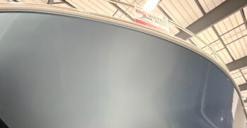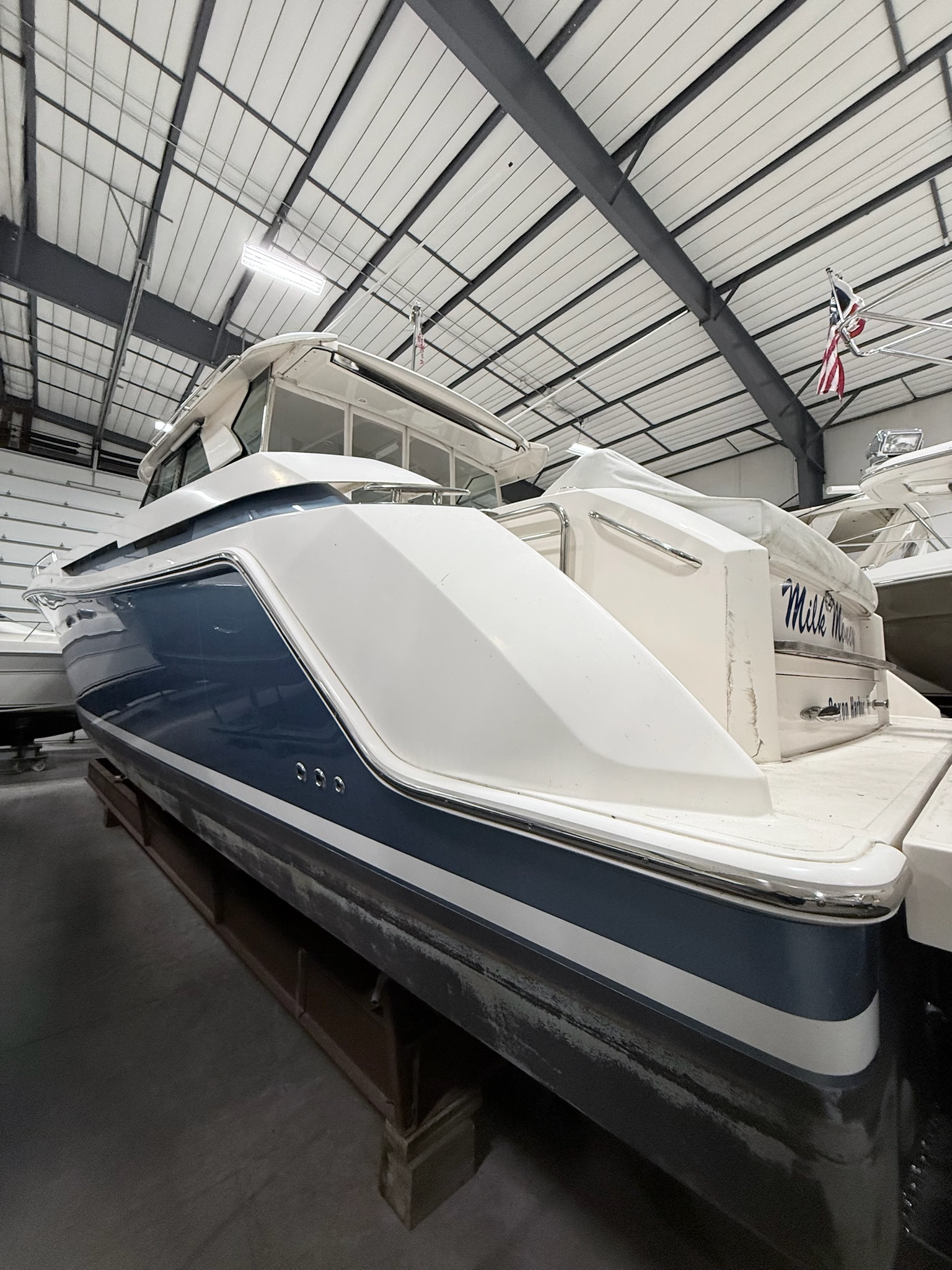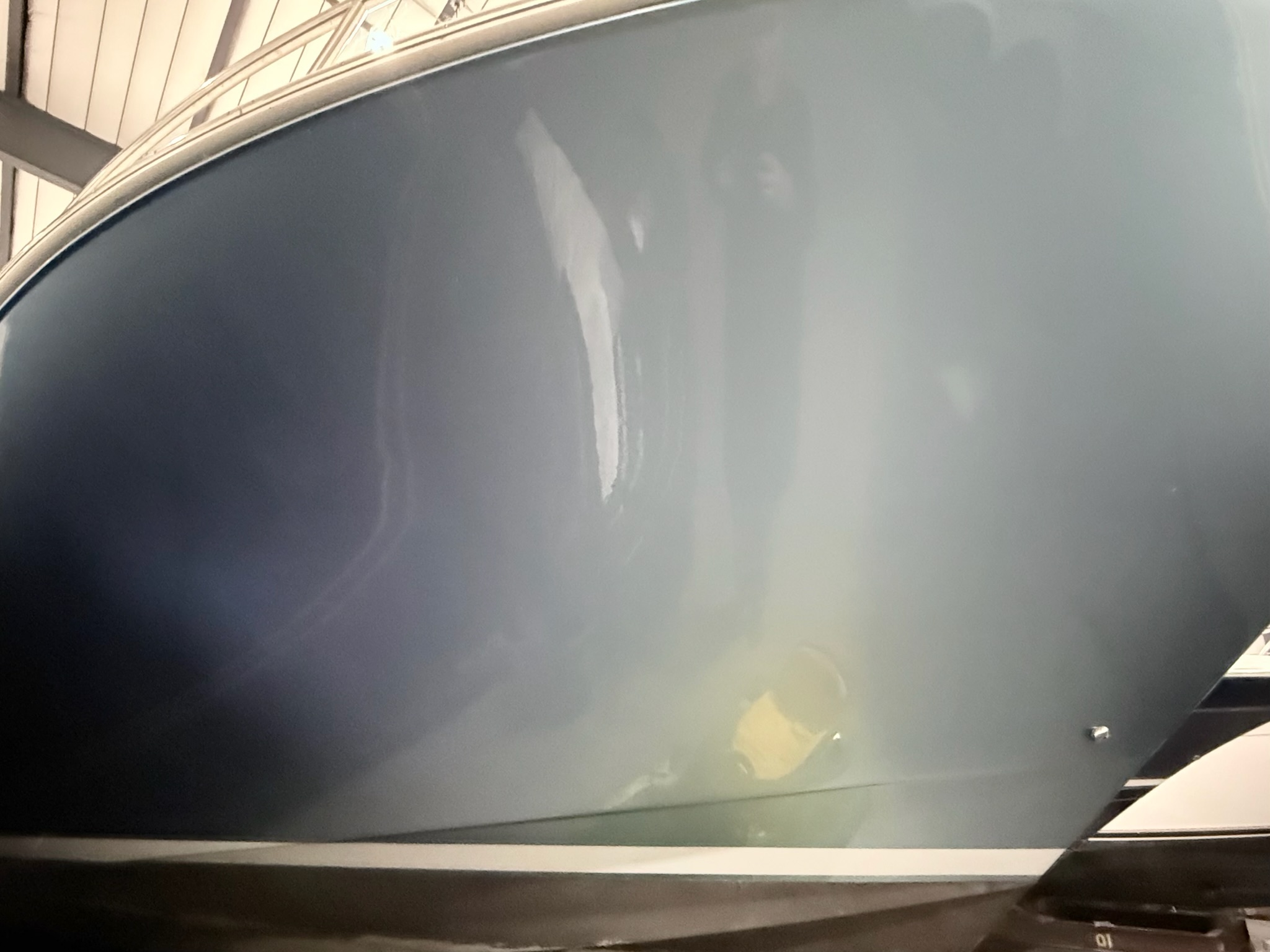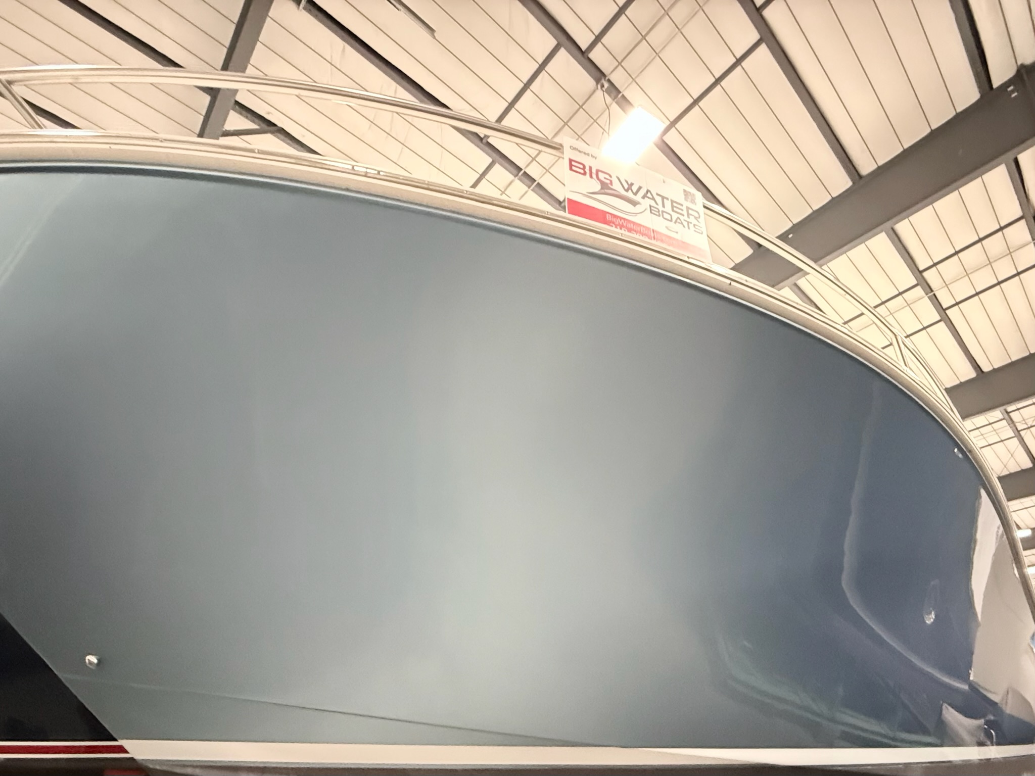 - Metallic blue topsides with boot stripe